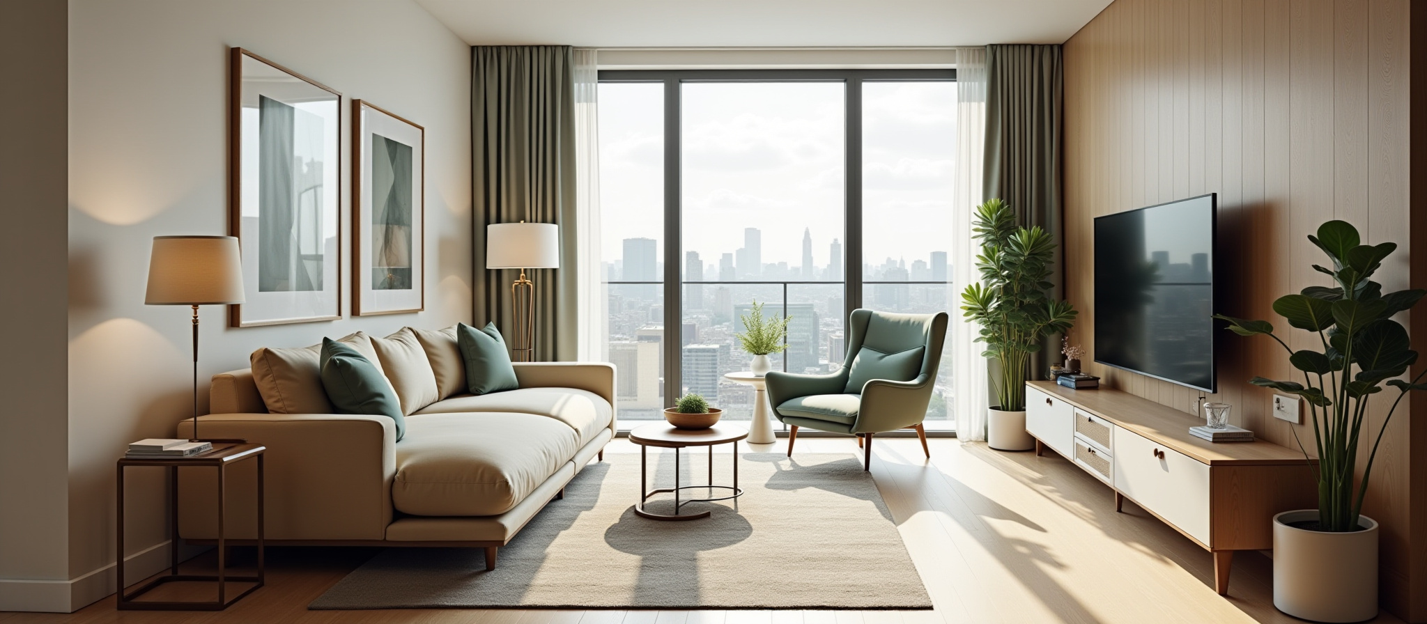 Modern apartment with stunning city views and all amenities, ideal for professionals seeking convenience and style.